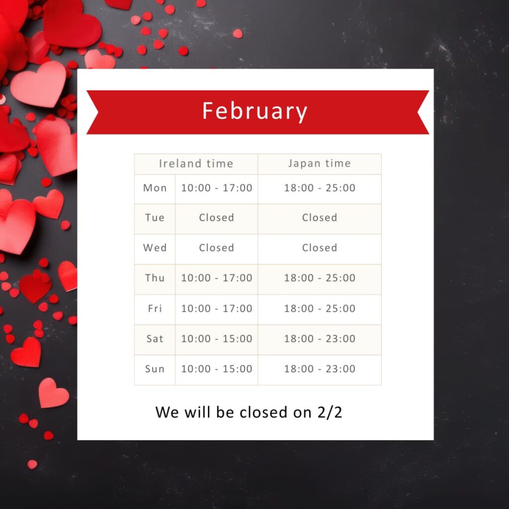 2月2日(月)はアイルランドの祝日なのでお休みです。